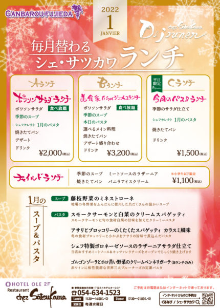 毎月変わるランチ【1月】のお知らせです。